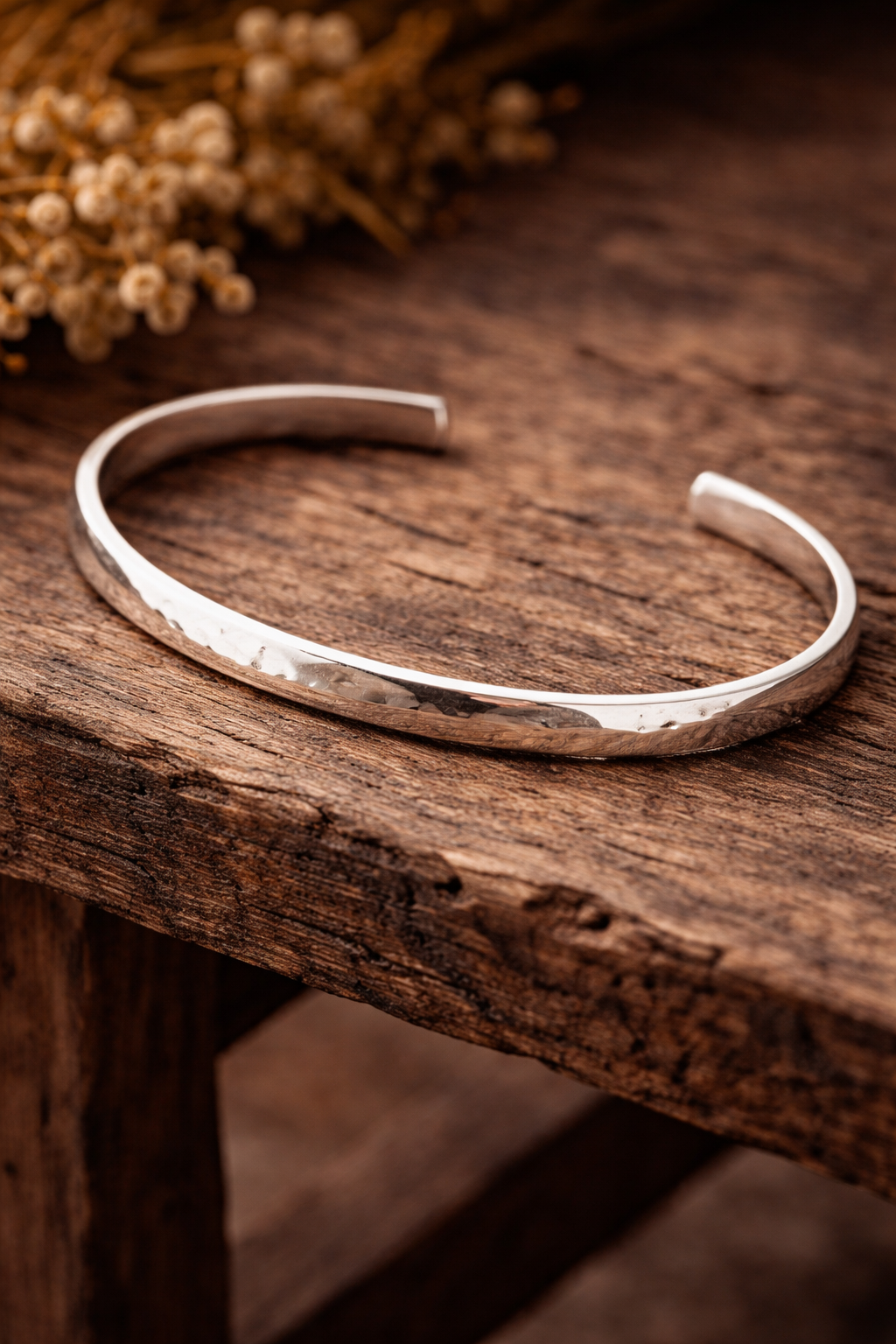 Pulsera elaborada a mano en plata, con diseño minimalista y acabado pulido. Ideal para uso diario, elegante y ligera, perfecta como regalo artesanal de alta calidad.
